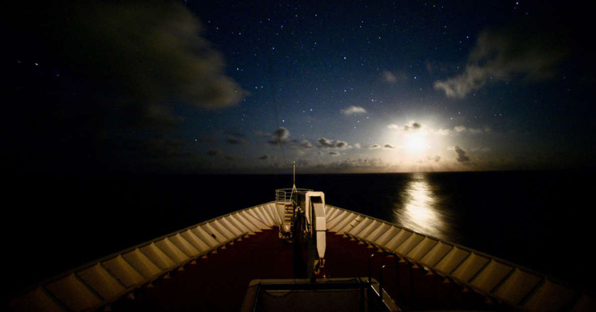 If you’re at sea around the New Moon then your timing is good to capture a crescent moon displaying ‘Earthshine’. A crescent moon is visible close to the eastern horizon before sunrise in the few days before the New Moon and close to the western horizon just after sunset for a few days after the New Moon. When it’s very slight the dark side of the moon – its shadowed portion – is visible. That’s because sunlight is being reflected off Earth’s clouds and ocean and back onto the moon. A cruise ship is an ideal place to capture it. If you’re lucky there will be planets close by, too. Either way, with the crescent moon close to the horizon look out for moon-shine (and/or planet-shine) on the ocean streaming towards you.