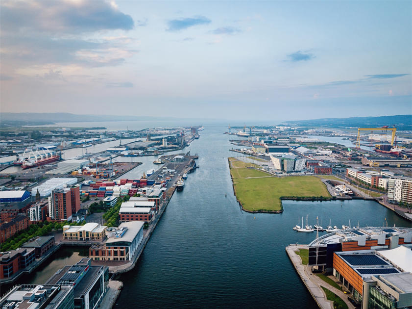 River Lagan is beautiful a river running through Belfast and surrounded by captivating buildings.