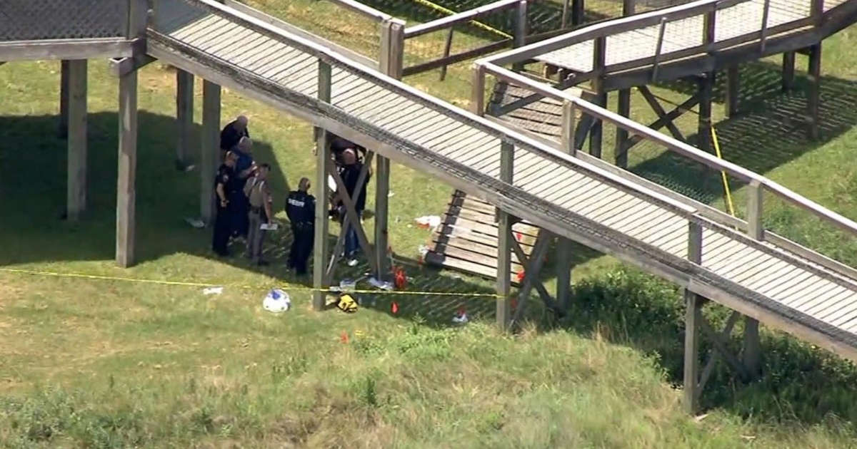 Footage from the scene showed a section of a wooden walkway ramp that had partially detached, falling on the grass below.