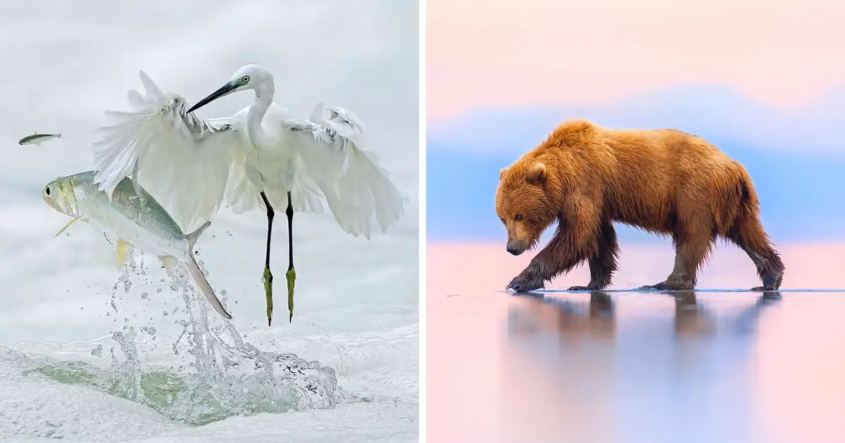 Xiamen City is home to thousands of egrets, earning it the nickname ‘the island of the egrets.’ At first blush, this image captured there appears to be a simple photo of an egret getting a surprise jump from its prospective meal. Then, a moment of delight—the meal is chasing a meal of its own!