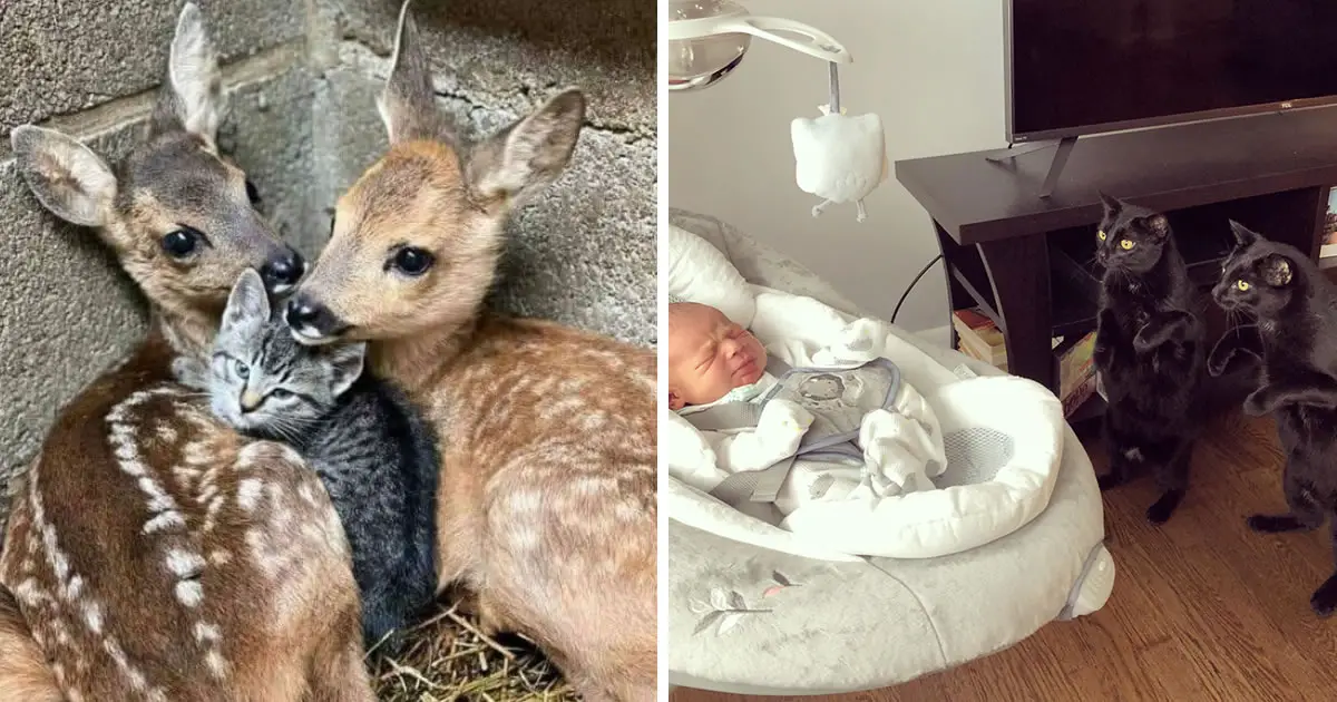#3 “A kitten sandwiched between 2 fawns.” Simply adorable