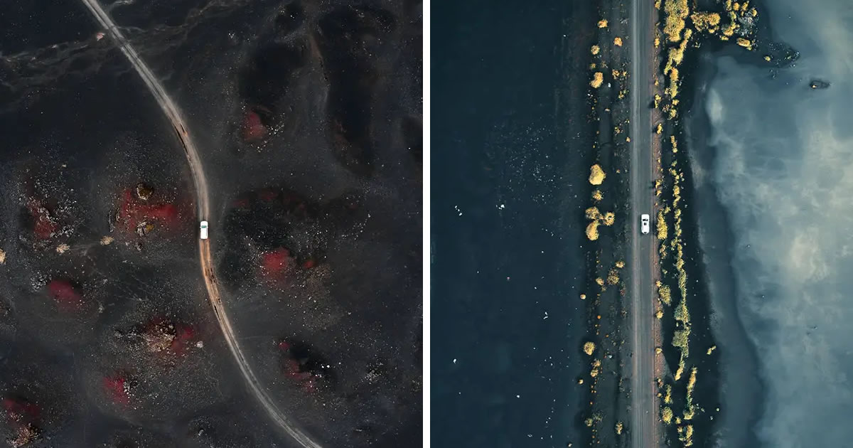 For the past six months, I’ve been traveling thousands of kilometers for several photo projects. As I mostly had to drive to very remote areas, I passed many types of terrain. From highlands to swamplands. From lava fields to river arms. At a height of about 150 meters, I’ve documented my journeys from above my car.