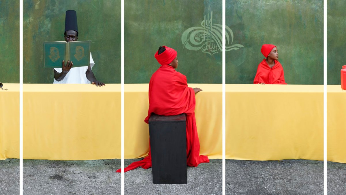 In reclaiming space behind and in front of the camera, many artists here turn to performance. Among them is the late Rotimi Fani-Kayode, in whose photographs of the late 1980s young men bedecked in flowers and beads engage in practices that hover ambiguously between Yoruba ritual and sensual exploration. Illuminated like a Baroque painting, a figure naked but for a leather fetish harness bows his head beside a carved and painted sculpture, suggesting aspects of the artist’s life – his queer identity and his Nigerian family’s traditional values – that were not easily reconciled.