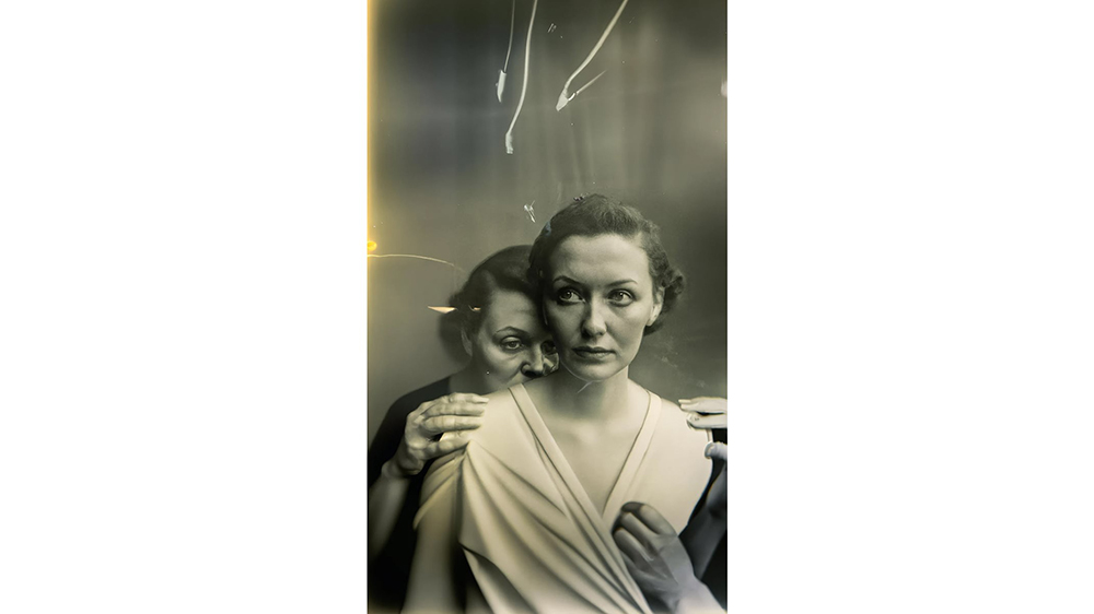 Boris Eldagsen won the World Photography Organization’s Sony World Photography Awards for a piece titled The Electrician. The work appears like an old photograph showing two women, one of whom crouches behind the other. Another person’s hand extends toward the front woman’s body.