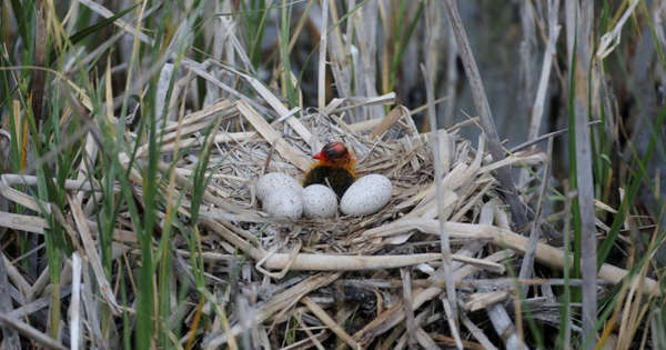 FILE PHOTO: A recently hatched American Coot chick sits in a nest in the Willard Spur Waterfowl Management Area near Willard