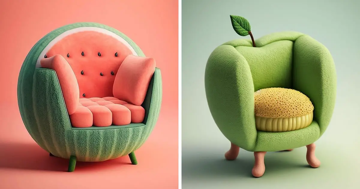 Explore a collection of imaginative and intricate conceptual chairs inspired by the vibrant colors, intriguing shapes, and unique textures of fruits and vegetables. These playful and inventive chairs were generated using cutting-edge Artificial Intelligence technology by Midjourney, and imagined by Bonny Carrera, a talented 3D digital artist based in Berlin, Germany.