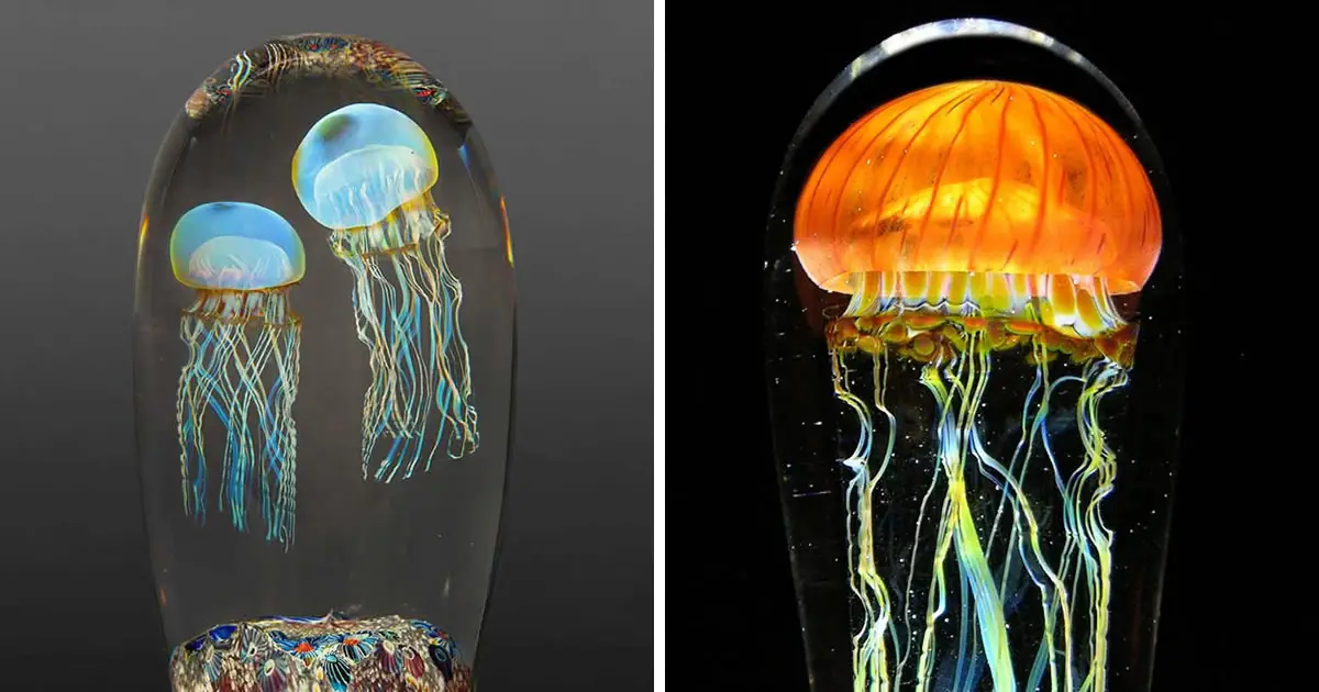 California-based artist Richard Satava creates incredible glass Jellyfish sculptures. Glass sculptures are typically handcrafted by skilled glass artists who use various techniques and tools to shape, manipulate, and fuse glass into beautiful and intricate forms. Glass sculptures can be made from various types of glass, including clear, colored, or textured glass, and can range in size from small figurines to large installations.