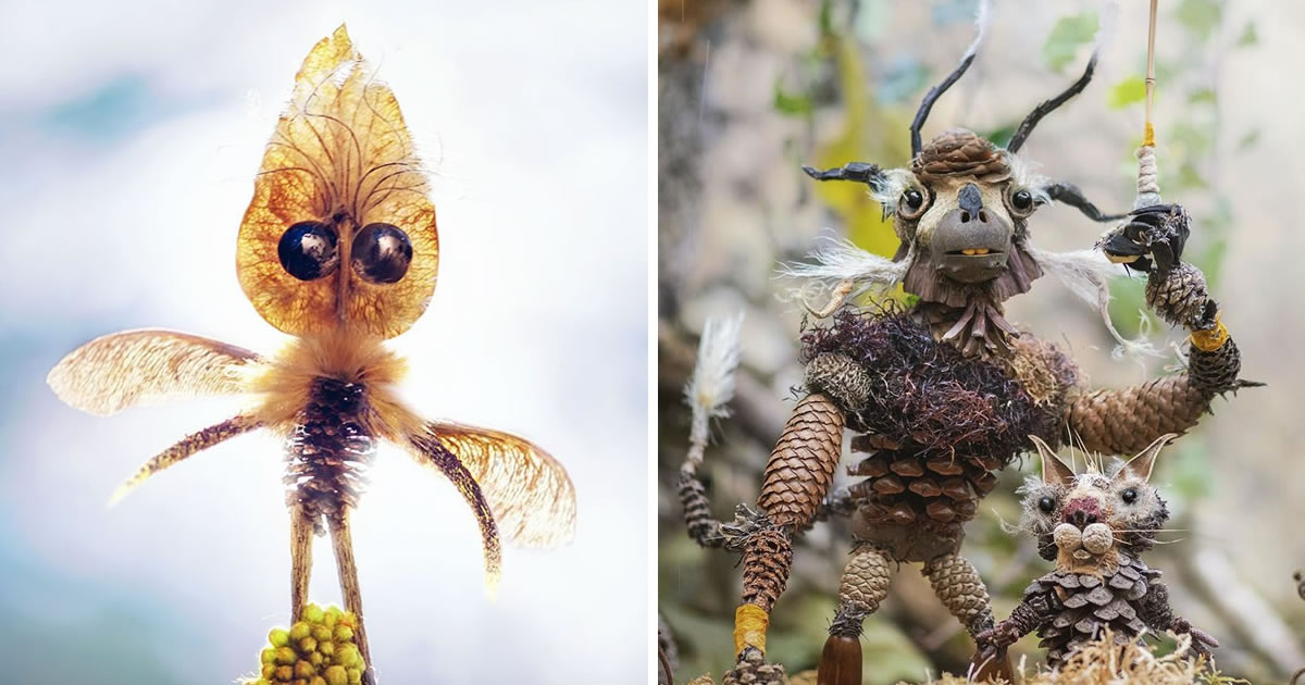French illustrator and artist Sylvain Trabut crafts incredible forest creatures using natural elements. In his words “I grew up in the countryside, invited by nature to come and observe it closely. When I was born, my parents planted a Scots pine. My plant brother and I are the same age, but today his peak is far above my white hair.”