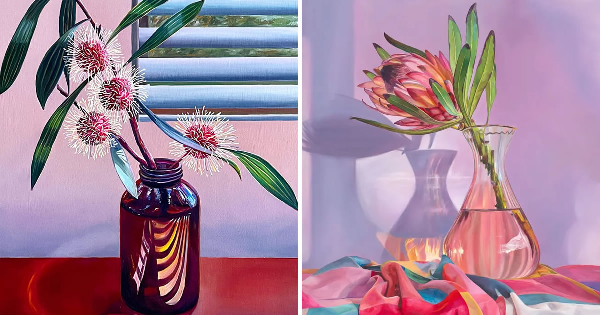 Australian fine artist Wanda Comrie creates beautiful hyper-realistic still-life paintings with vivid and vibrant colors. Wanda responds to shadow play in domestic scenes and locally found botanicals, she reflects on the beauty and complexity that everyday living can provide. Many years after studying graphic design, her work retains a solid graphic influence with a strong colour palette.