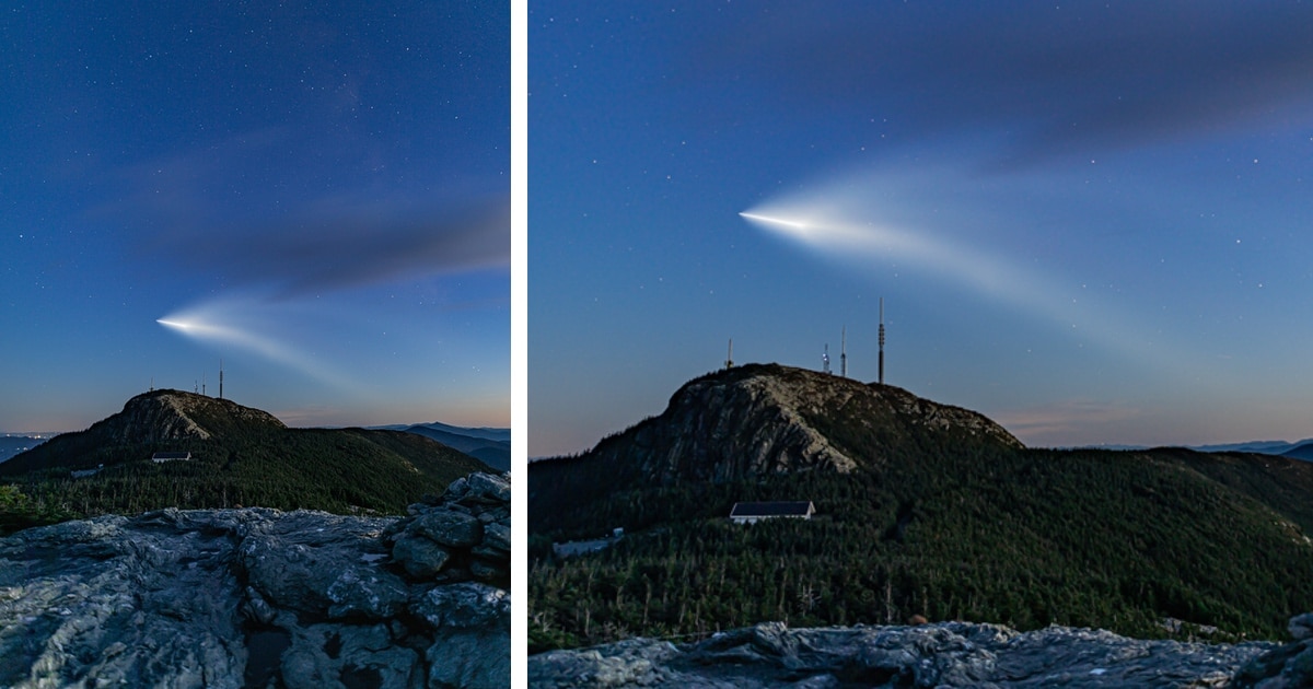 When photographer Josh Defibaugh climbed to the top of Vermont’s Mount Mansfield, he was hoping for a successful night of photography. But he never could have imagined the incredible image he was about to take. Defibaugh was looking to capture the Milky Way, but his plans were upended by the presence of a SpaceX rocket.