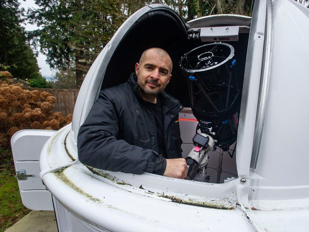 The dome itself is manufactured in Coquitlam by NexDome Observatories — they ship them all over the world — and takes a few hours to assemble.