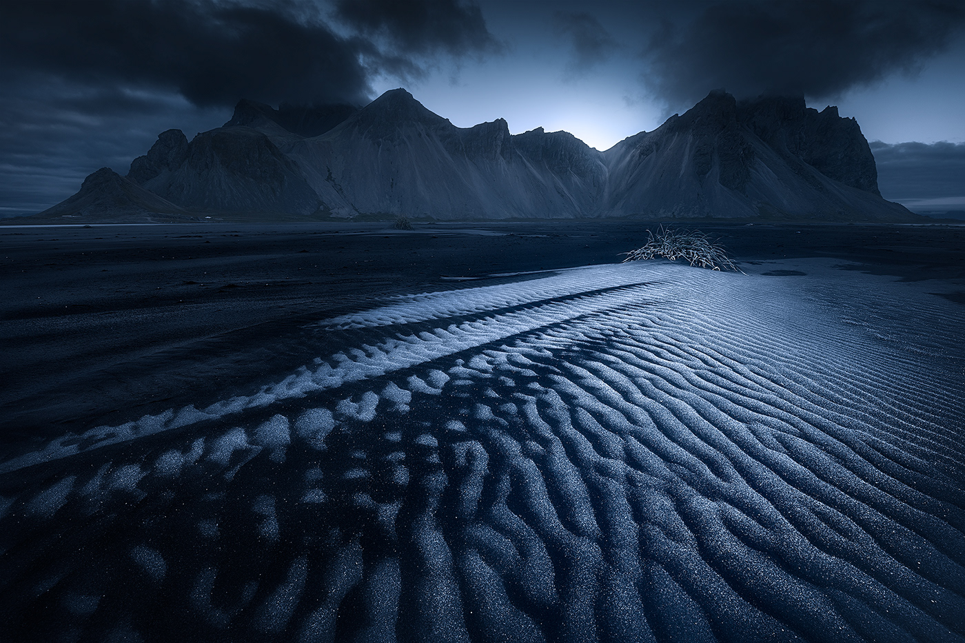 Often, the weather in the Arctic lands can be rainy, cloudy, or snowy. I love to capture the best of these weather conditions and the elements in these kinds of landscapes. The pure magic of the arctic lands can be felt during blue hour or on a snowy day. Observing the artistic three-dimensionality of the ice or the wild movement of the waves in the sea, I always can find inspiration for new points of view to accentuate the dark beauty of nature.