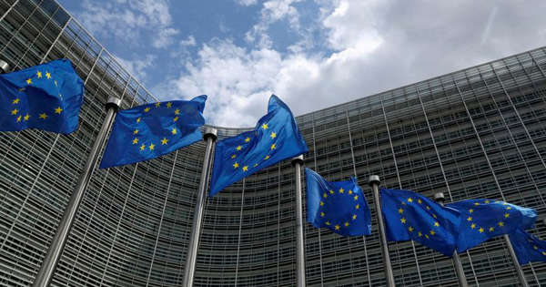 FILE PHOTO: European Union flags flutter outside the European Commission headquarters in Brussels