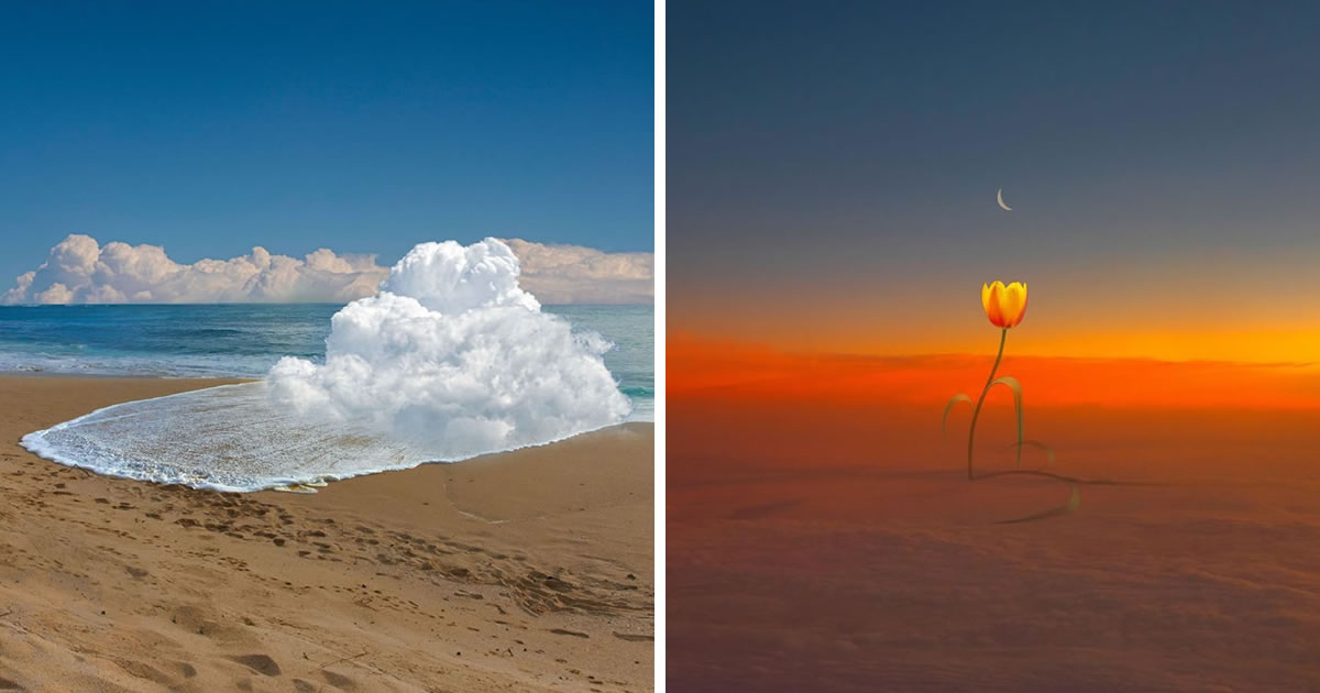 New York-based South Korean digital artist Kanghee Kim creates ethereal digital photo collages. Kanghee Kim uses Photoshop to combine and transform the everyday images she photographs into dreamscapes that open out into a new, invigorating world. A flowering tree glimpsed in a mirror that our eye reads as a window; a creamy desert landscape stretching, in a translucent ghost image, across the walls of a city apartment: Kim’s work, a blend of the familiar and the surreal, is both haunting and reassuring.