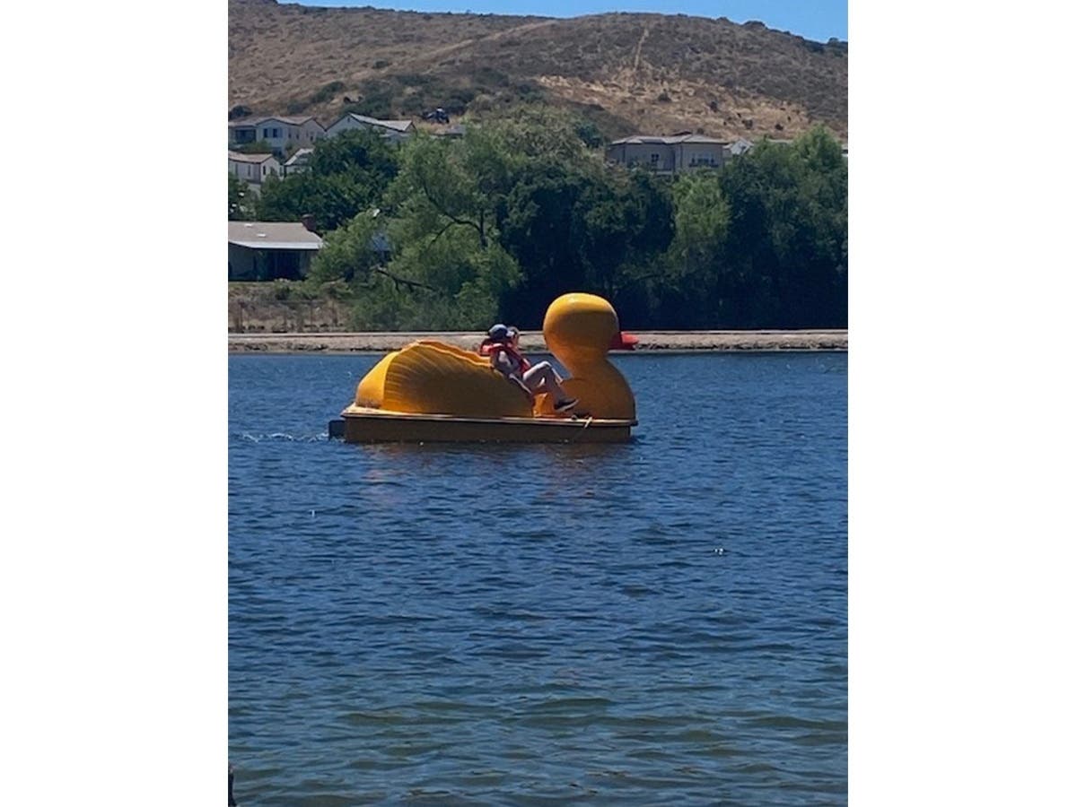 SANTEE, CA — Patch reader Margie Pastorek captured this photo of people on a duck pedal boat at Santee Lakes.
