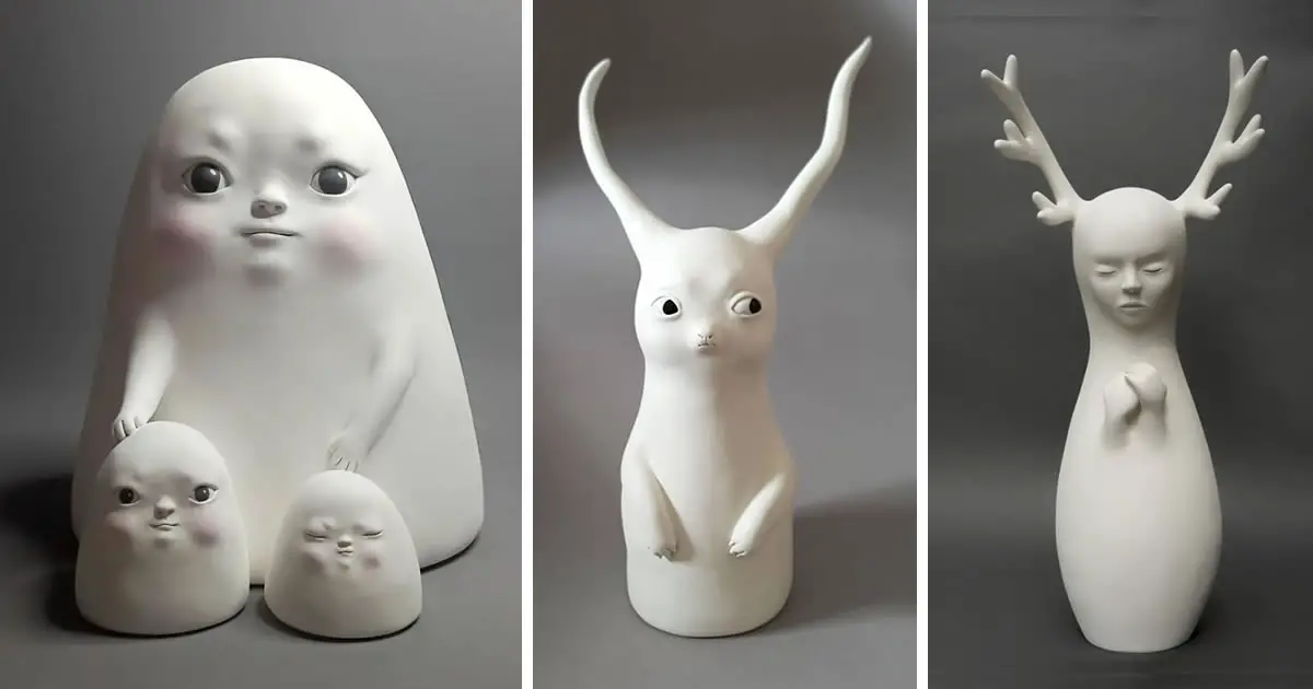 French visual artist Clémentine Bal creates peculiar sculptures in meditative expressions. Clement lives in Val-Revermont and she uses sculpture to create imaginary characters, mixing shapes observed in nature. The clean lines of these creatures, as well as their meditative expressions and delicate postures give them a lot of softness.
