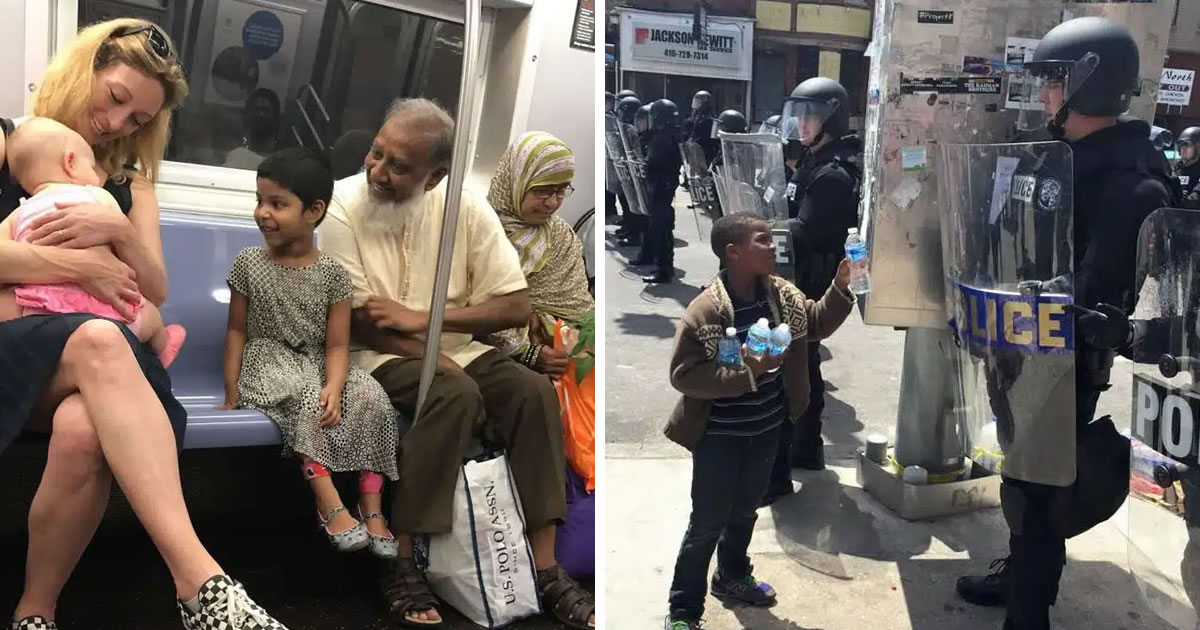 #28 On a hot day in Baltimore, this boy gave a police officer a bottle of water.