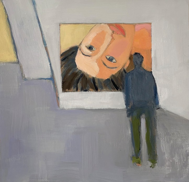 “Looking at Alex Katz,” oil on panel by Sarah Benham Spongberg. At Jag Gallery. COURTESY PHOTO
