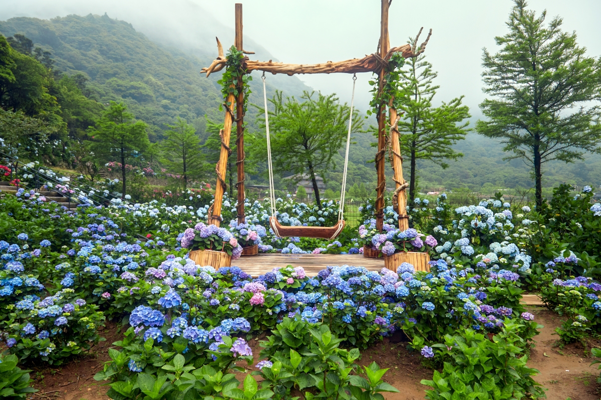 Hydrangea and hot coffees at Min Yang Pu Leisure Farm