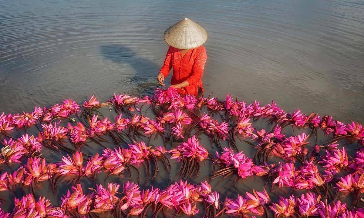A photo of a girl washes water lilies after harvesting them on a field in Long An Province by HCMC-based lensman Pham Huy Trang. Photo courtesy of Trang