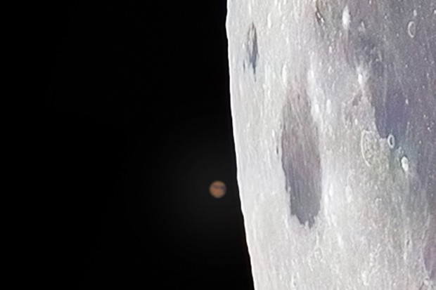 Aim to take shots when the Moon is near to Mars either before or after the occultation – this should give the best results.