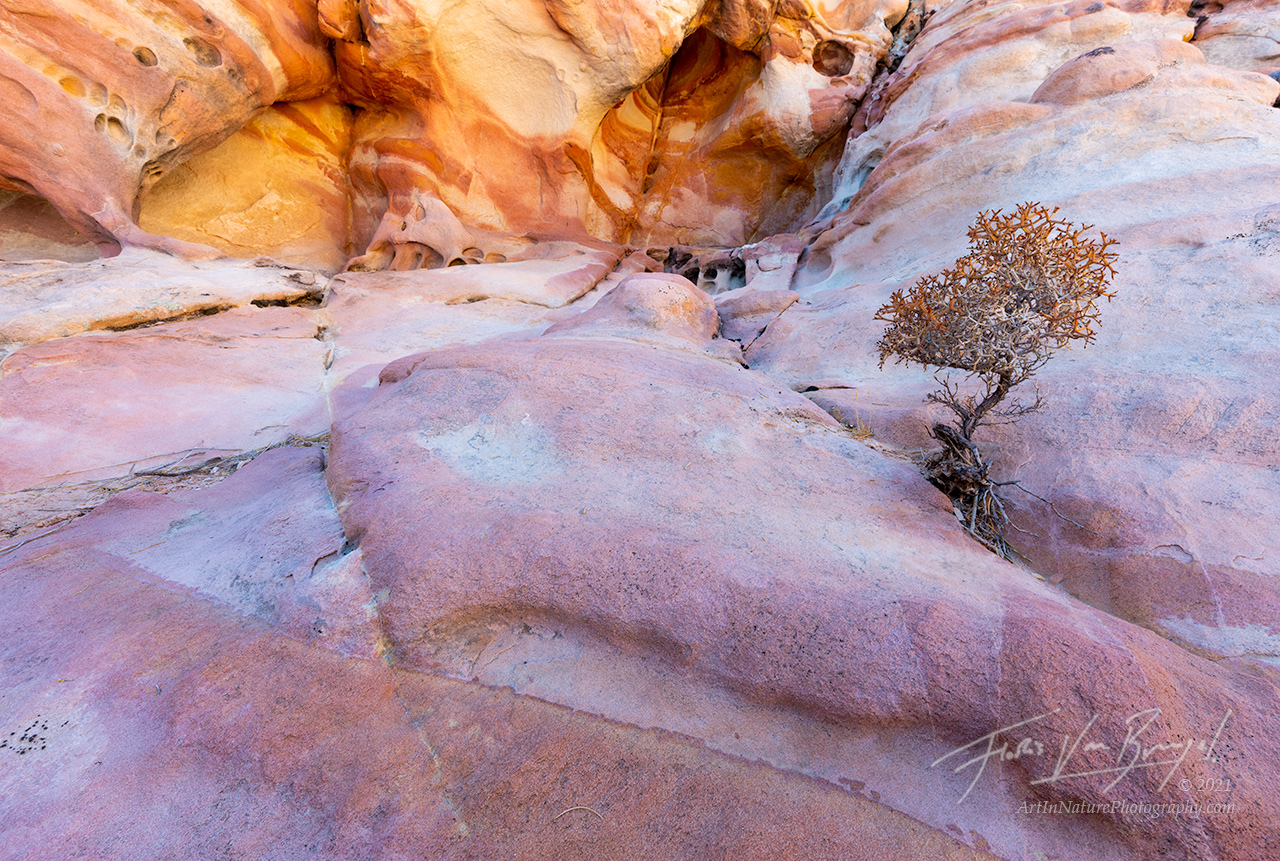 Strange colors and patterns in the sandstone abound in southern Nevada’s sandstone country.