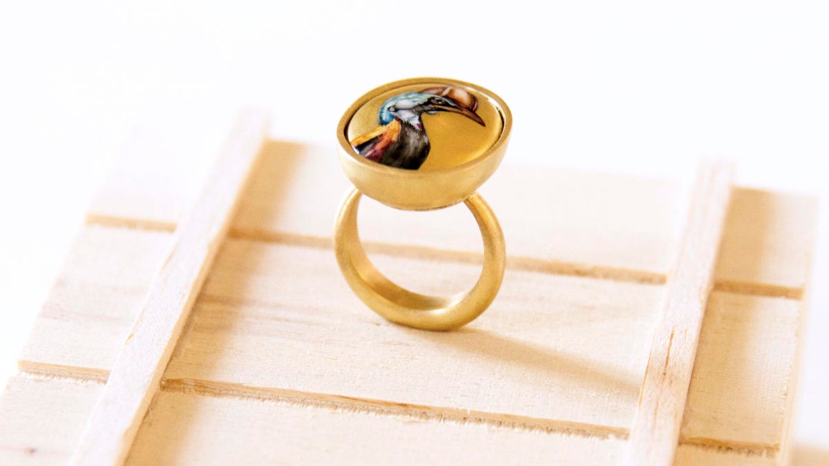 One-of-a-kind Linneo gold ring with ink and gold on porcelain plate designed and handcrafted by … [+]