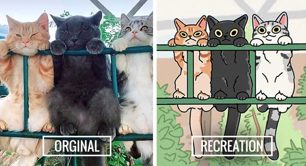 One artist, named JoJo, originally from Korea and now residing in Toronto, has taken this fascination with felines to the next level by transforming humorous pictures of cats into even more amusing and witty illustrations. Their creative and unique approach has resulted in some truly amazing works of art, which you can explore below. Get ready to laugh and be amazed by the world of JoJo’s comical cat illustrations!