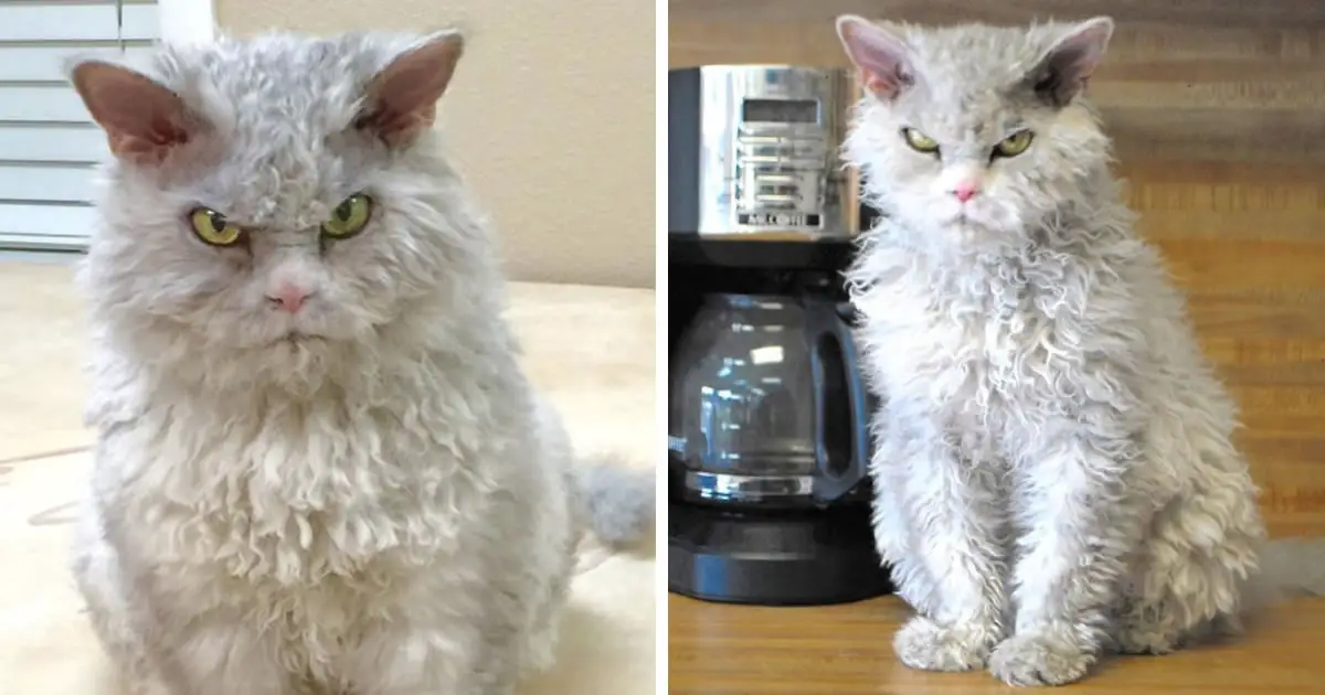 Meet Pompous Albert, the office cat who looks always angry. This Selkirk Rex cat from Salt Lake City was named after Albert Einstein, and shares with his human counterpart a subtle resemblance.