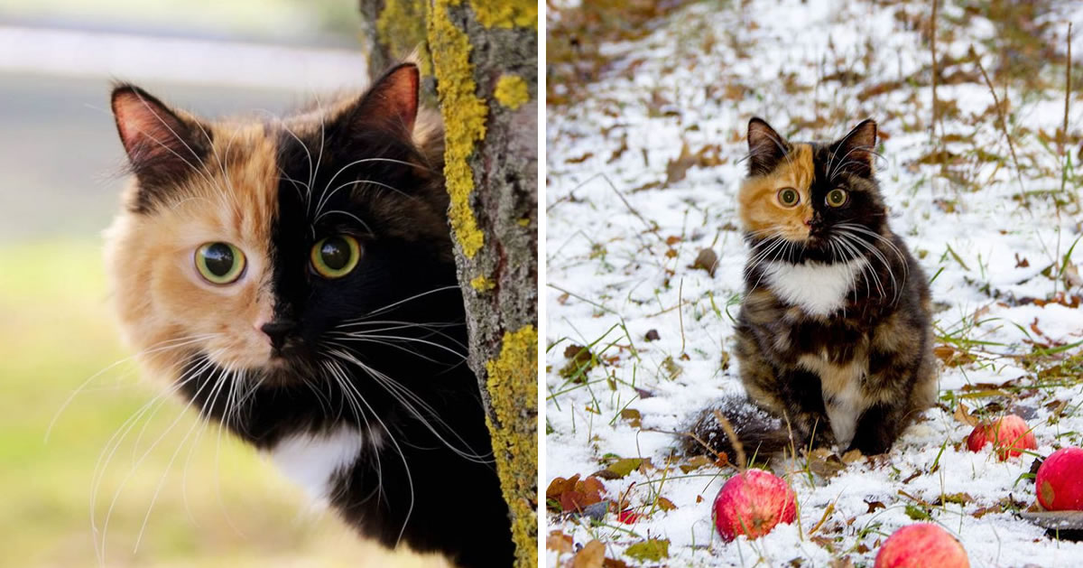 Yana the cat has a face with one half of it brown colored and the other half black colored. This cute chimeric feline owns breathtaking markings on her fur. From the looks of it, her parents might have run out of ink when creating Yana. Be sure to check out Yana’s Instagram for more cute and lovely photos.
