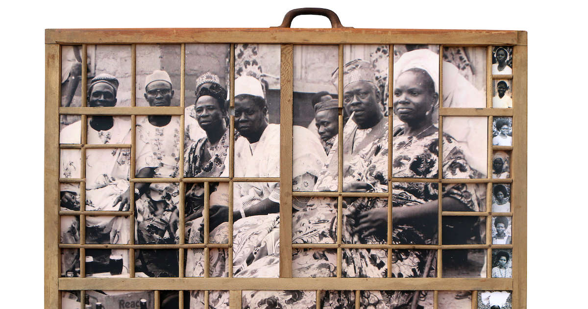 The past is a fragile thing, a fact underscored by the thin, vulnerable chiffon that Abraham Oghobase uses in his installation Constructed Realities (2019–22). These pieces of silk are printed with centuries-old British texts about “primitive tribes” and the mining of coal in Nigeria; they are then placed atop re-photographed images from the colonial period. Some of those pictures have portions removed, so that the people in them appear to slip away, leaving behind ghostly half-presences.