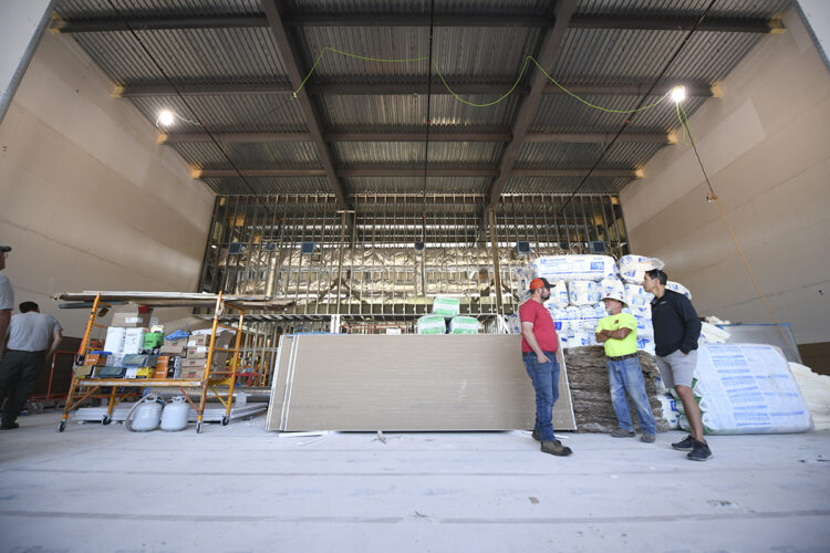 Piles of materials sit in the middle of the area that will house permanent exhibits at the River’s Edge Discovery Center.