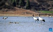 Black-necked cranes are pictured at the Caohai National Nature Reserve in the Yi, Hui and Miao Autonomous County of Weining, southwest China’s Guizhou Province, Feb 10, 2023. Photo:Xinhua