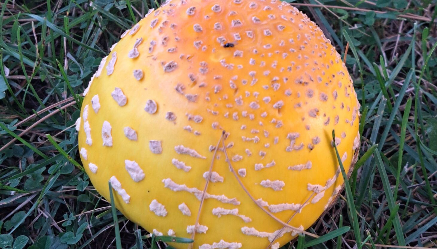 A: Beyond cool. Andy Miller, principal mycologist with the Illinois Natural History Survey, emailed that it was Amanita muscaria var. guessowii. He added, “It is one of the most photogenic and easily recognized mushrooms in the USA. It differs from the true fly agaric in having a yellow cap vs. a red cap.