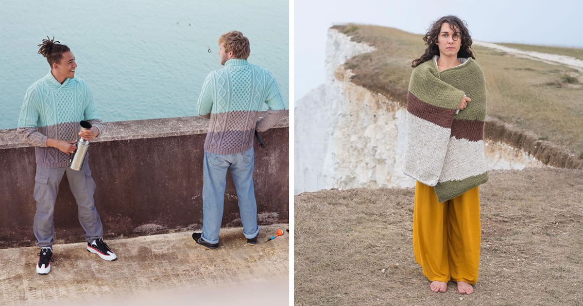 Joseph named this series “Camouflage Sweaters” and imagined how clothes could look like if they perfectly combined with their surroundings and, with the support of the knitting of Nina Dodd.