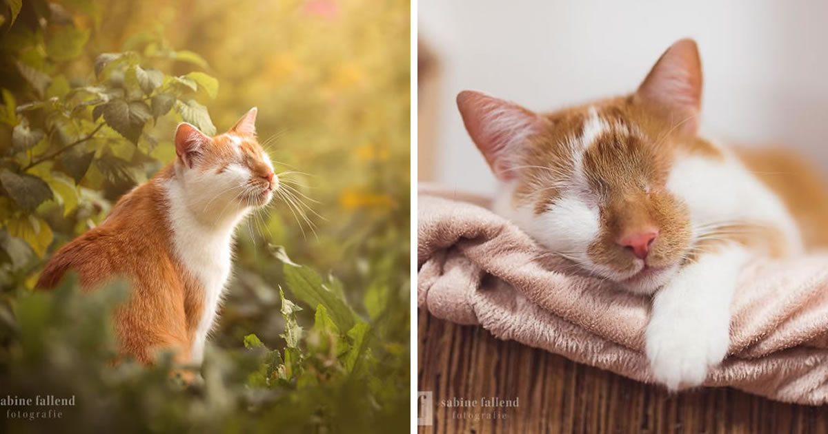 Photographer Sabine Fallend soulfully captured her eyeless cat who sees with his heart. The cat Kazou was found as a kitten when his eyes were already badly damaged from the cat flu. Sadly, they couldn’t be saved and had to be surgically removed.