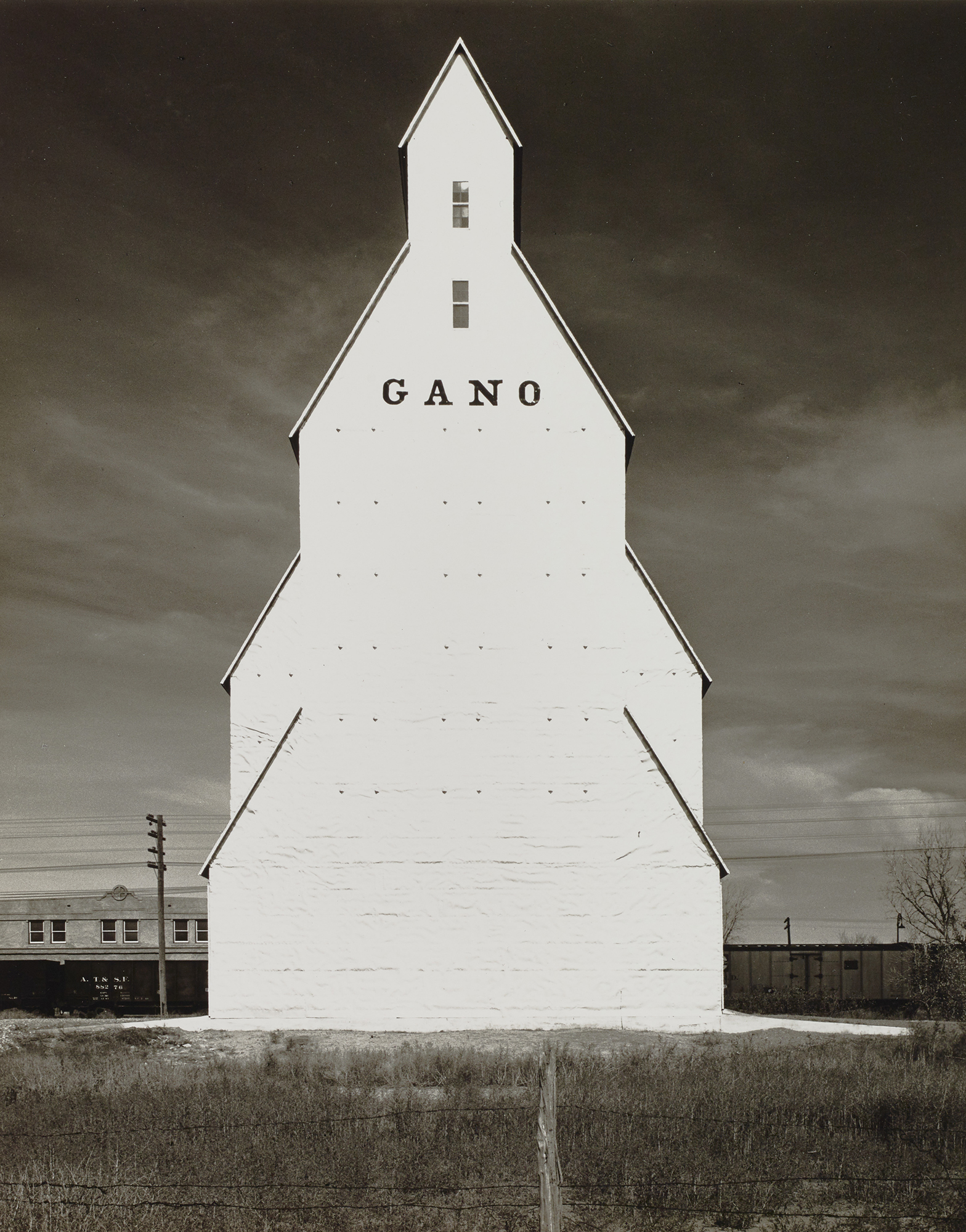 Wright Morris captures buildings and objects that were central to life at the time: the church, the meeting house and the barber shop. In the “Grano Grain Elevator, Western Kansas,” he elevates a humble farm building to the status of a rural cathedral, its symmetrical form reaching up to the heavens.