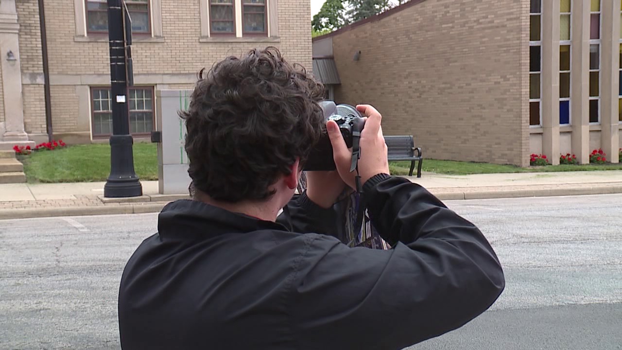 The high school photography class at Heartland Christian was taking pictures downtown around noon on Tuesday.