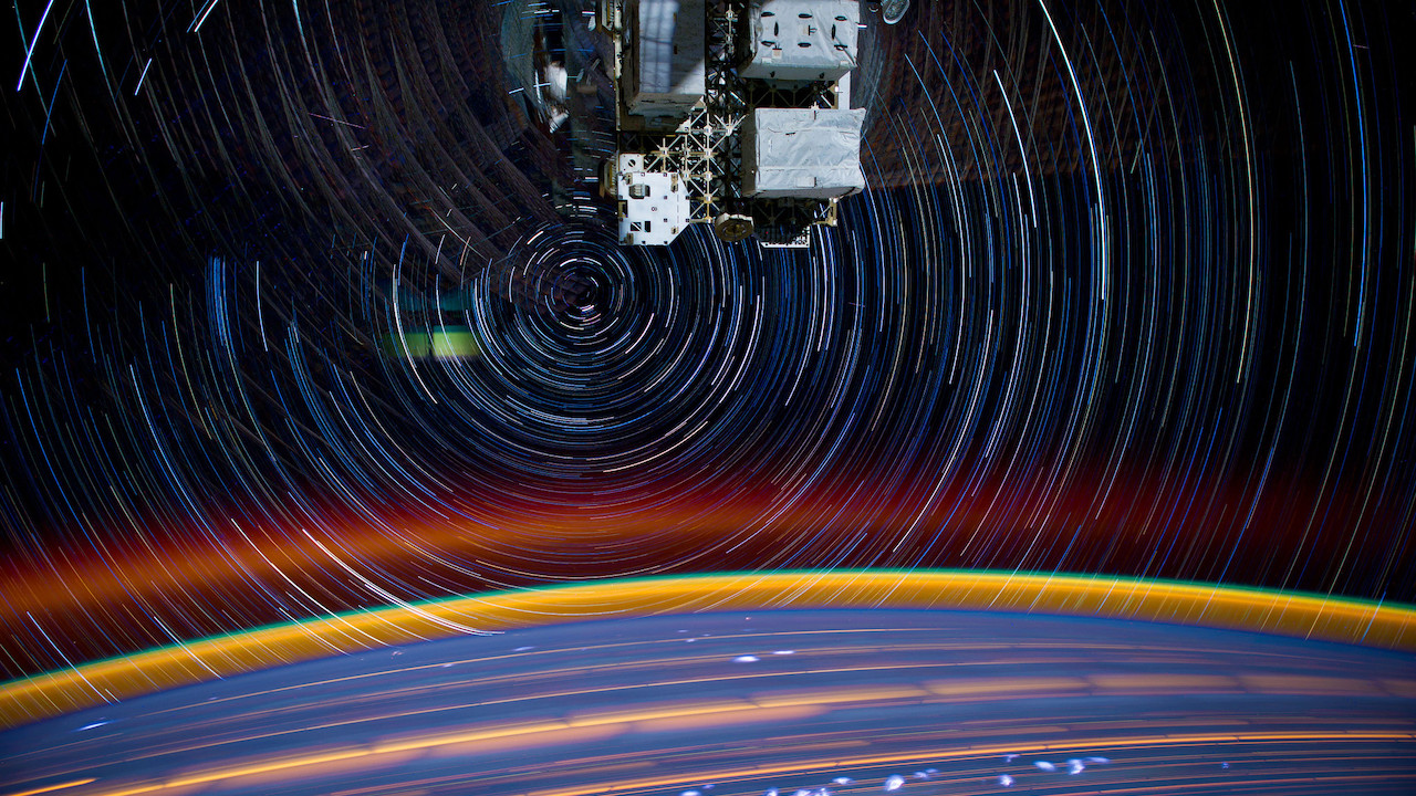 To create this composite long exposure, NASA astronaut Don Pettit combined multiple 30-second exposures from a mounted camera on the space station into one image.