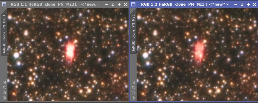 However, sometimes we might not realise this happening or it is just some small features. To me, this happens a lot whenever there ‘happens to be’ a planetary nebula in the FOV. They are not the main target and I might discover them only when working on the images. They are often bright though, so bright they can easily clip, especially if you are using Ha together with RGB. In this situation there is a solution though: it might be clipped in the Ha data, but surely the RGB data has non-clipped signal there!