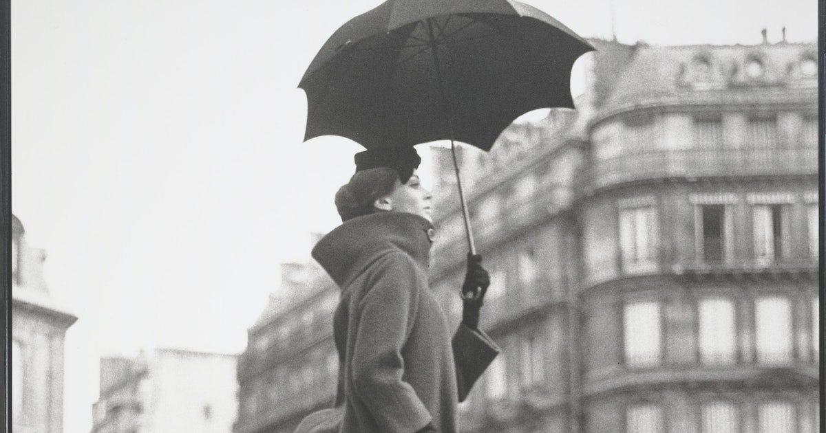 Richard Avedon, Carmen (Homage to Munkácsi), August 1957. The model wears a coat by Pierre Cardin, and was photographed at Place François Premiere square in Paris.