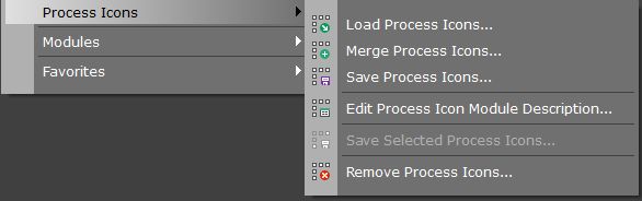 Go to Process->Process icons->Save Process Icons to store all process icons currently present in your workspace. Likewise you can go here and pick ‘Load Process Icons’ to load them up in the future.