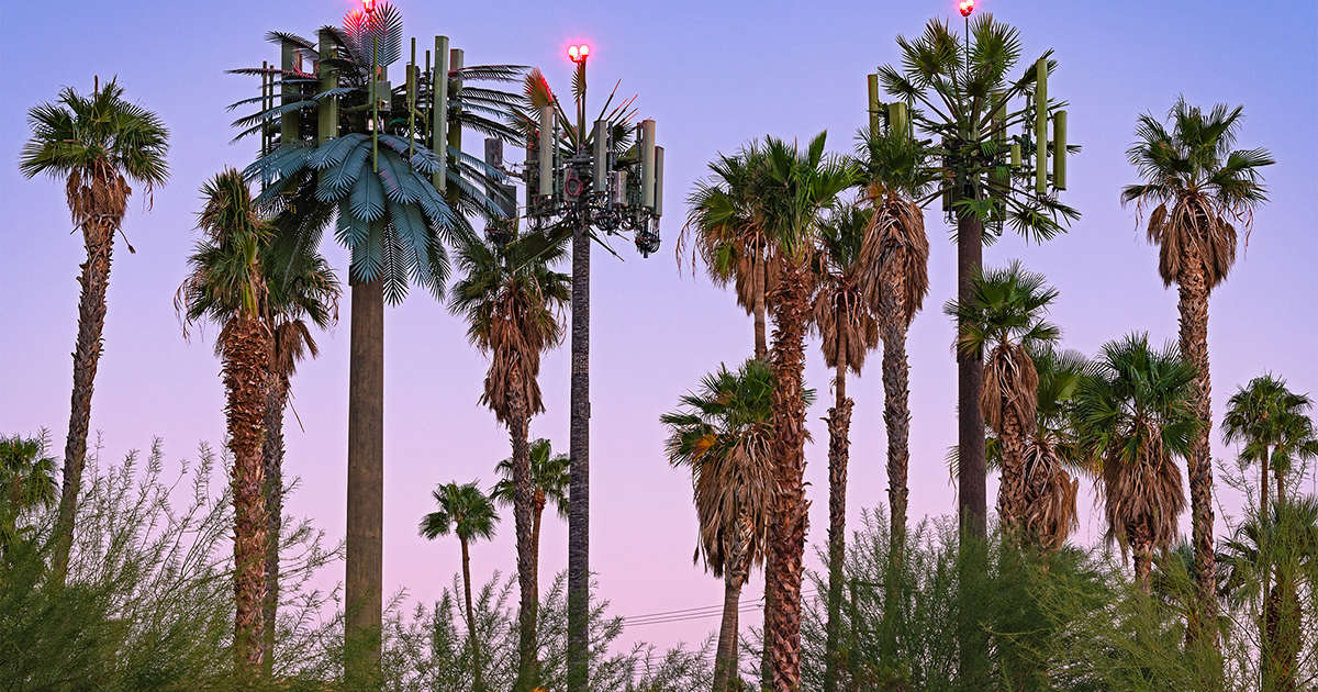 Take a second look, and you’ll spot something peculiar about some of these trees – the fact they’re not trees at all. They’re mobile phone masts in disguise, and have been popping up across the US in recent decades, including near Palm Springs airport, pictured (Picture: Annette LeMay Burke)