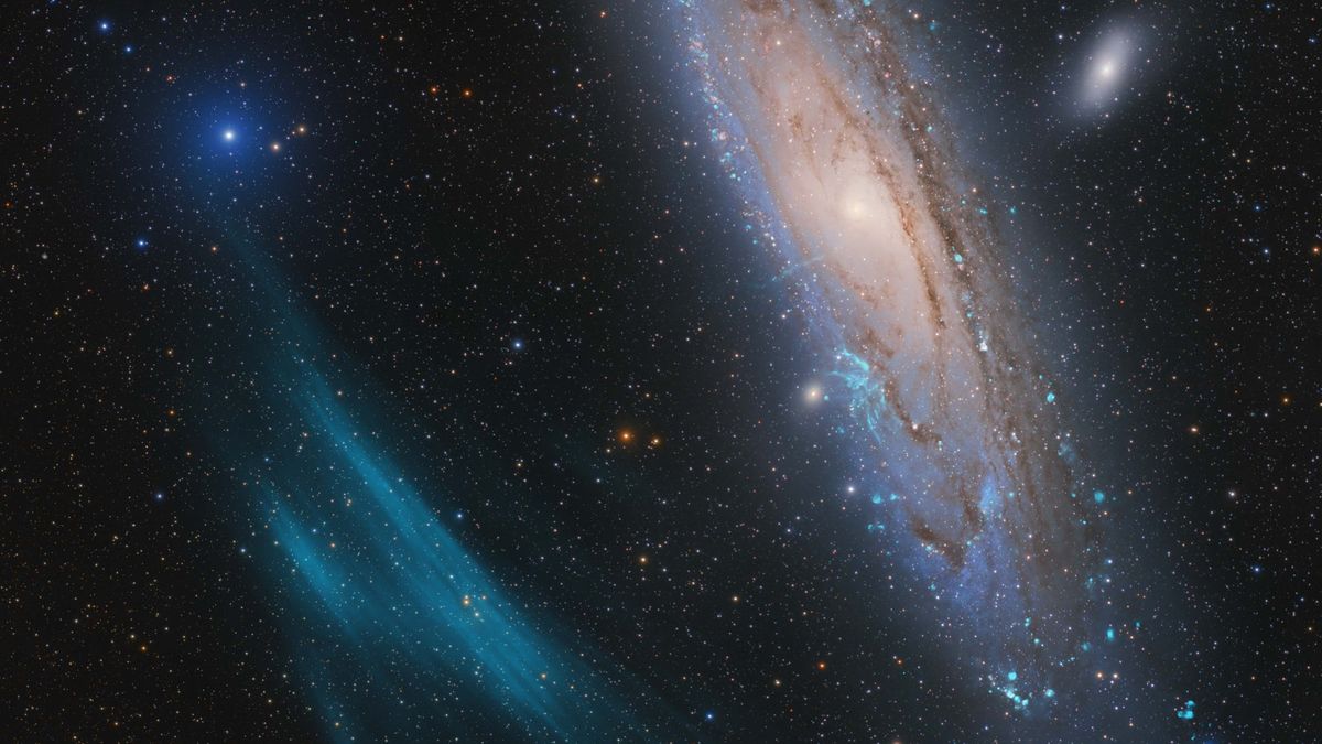 This winning photo of the Andromeda galaxy from the amateur astronomer team led by Drechsler, Strottner and Sainty is titled Andromeda, Unexpected, for the large, blue plasma arc pictured next to our nearest galactic neighbor.
