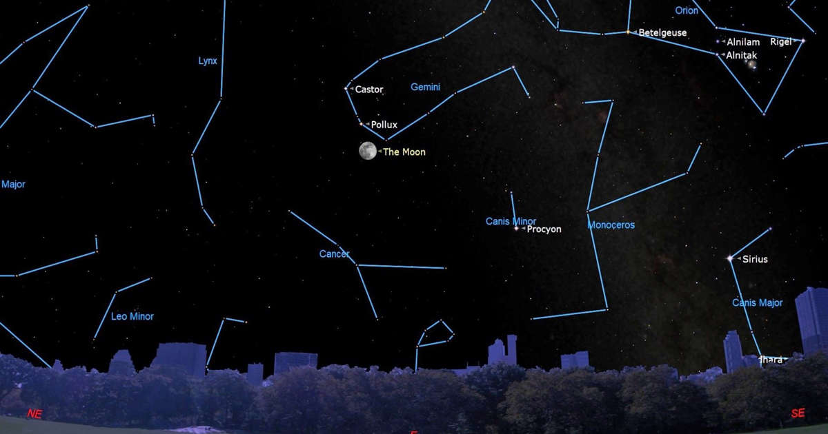 According to EarthSky, January, February, and March are great times for observing the twin stars of Gemini. The constellation is high in the sky to the east around nightfall and reaches its highest in the sky at around 10 p.m. your local time no matter where an observer is on the globe in early February at the time of the moon meeting.