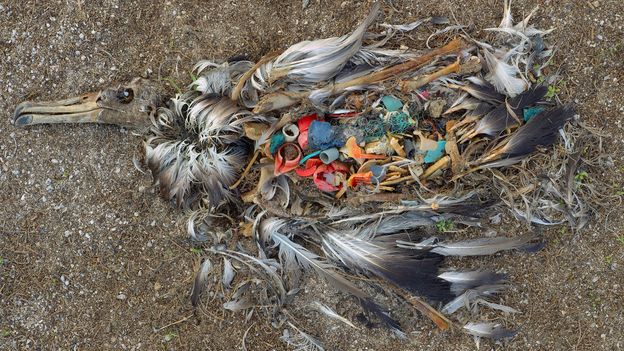 Jordan was not the first photographer to capture the impact of the plastics crisis on Midway’s albatross population. The first known photo was taken by US researchers in 1966 and published in 1969, says Wayne Sentman, a biologist and board president of the Friends of Midway Atoll organisation. Plastic ingestion is likely to cause “poor outcomes” for albatross chicks because fragments can puncture the gut wall or cause dehydration, and heavy metals and other chemicals can leach off in concentrations which may be lethal to the birds, says Sentman.