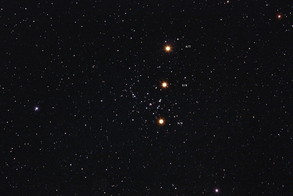 Porrima (Gamma [γ] Virginis) is fairly easy to split today, when 2.3″ separate its components. In 2008 (seen here), they were only 0.4″ apart. Credit: Jeremy Perez.