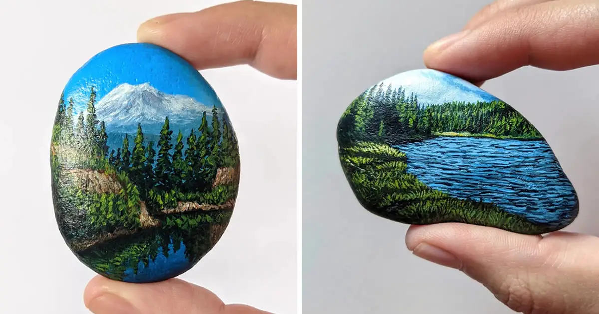 The Oregonian Artist painted beautiful scenes of Oregon on small pebble canvases. Oregon is a beautiful state in the Pacific Northwest region of the United States. Oregon has beautiful landscapes to attract people, and the “OregonianArtist” decided to capture the beauty of his homeland through art. He has been creating miniature paintings on pebbles for four years.