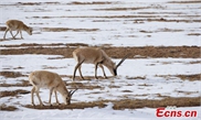 A flock of Tibetan antelopes forage at the Hoh Xil nature reserve, the 51th Chinese site inscribed on the World Heritage List, in the Sanjiangyuan National Park, Tibetan Autonomous Prefecture of Yushu, northwest China’s Qinghai Province, March 25, 2023. (Photo: China News Service/Ma Mingyan)