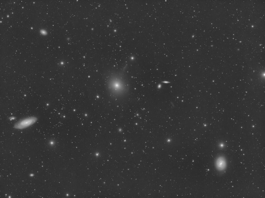 Tras dar cuenta del bocadillo encendí el telescopio y empecé a hacer la rutina de alineación a la polar y enfriado de la cámara. Unos minutos después ya estaba haciendo el enfoque y el plate-solve. Listos para arrancar la sesión. Objetivo: un hermoso grupo de galaxias en Virgo: M89, M90 y M58 justo debajo de la «Cadena de Markarian» y que quizá por eso muchas veces pasan desapercibidas.